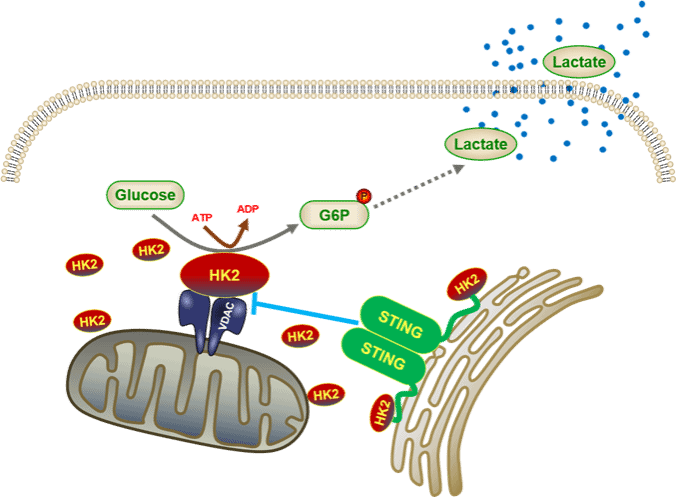 STING靶向HK2抑制糖酵解促进肿瘤免疫反应模式图